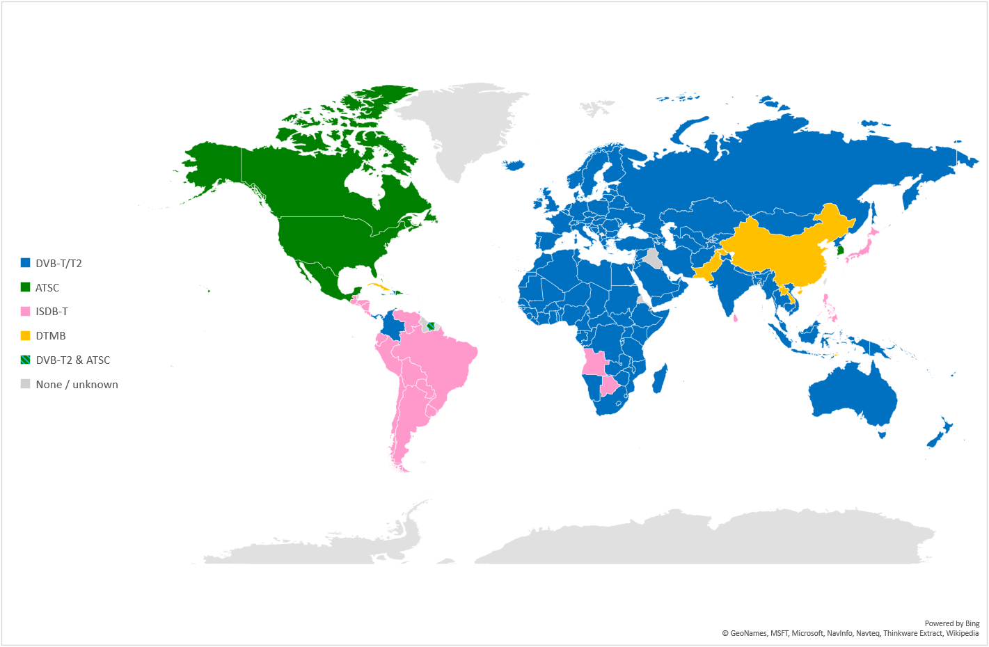 已实施或采取的 DTT 系统(来源:DVB/EBU/BNE DTT 部署数据库,2023 年 3 月)