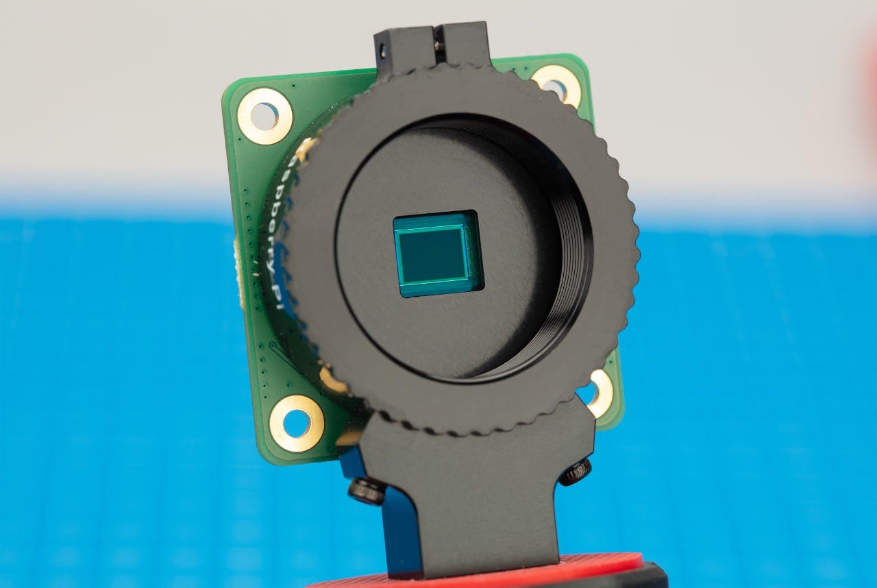 全局快门摄像头的图像传感器带有 6.3 毫米对角线活动感应区域,与树莓派的高质量(HQ)摄像头大小类似。但像素更大,可以收集更多光线。大像素尺寸和低像素计数在机器视觉应用中非常有好处;传感器产生的像素越多,实时处理图像就越困难。为了解决这个问题,许多应用程序会缩小和裁剪图像。使用全局快门摄像头和适当的镜头放大倍率,是无必要的,因为较低的分辨率和较大的像素尺寸意味着可以原生捕捉图像。