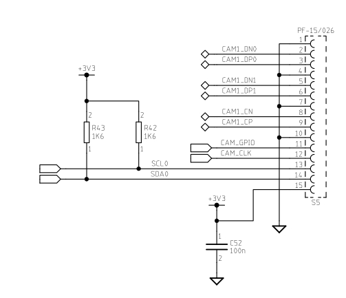 为了正确运行,两个摄像头都需要在 XVS 线上提供 1.65V 的上拉电压,这是通过树莓派上的 3.3V 和 GND 引脚通过电位分压器创建的。