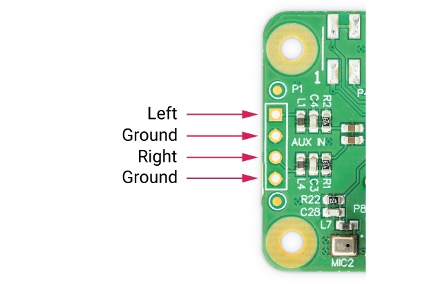 用于与外部电容麦克风配合使用的外部麦克风 3.5 mm 插孔。当使用外部麦克风插座时,会自动禁用 Codec Zero 上的内置 MEMS 麦克风。