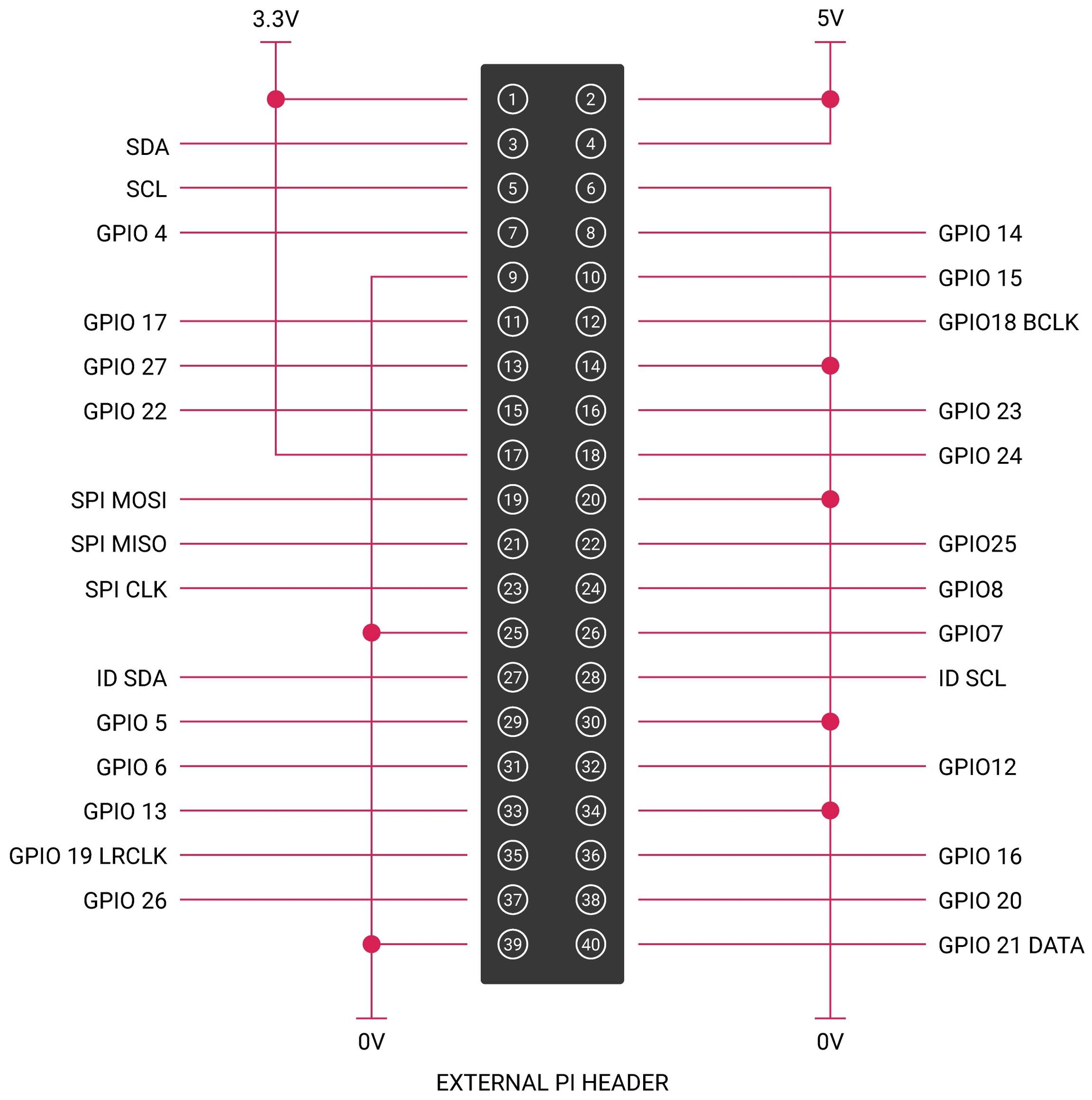 树莓派音频扩展板利用 GPIO 头上的许多引脚才能正常运行。其中一些引脚仅供扩展板使用,而另一些可与其他外设、传感器等共享。