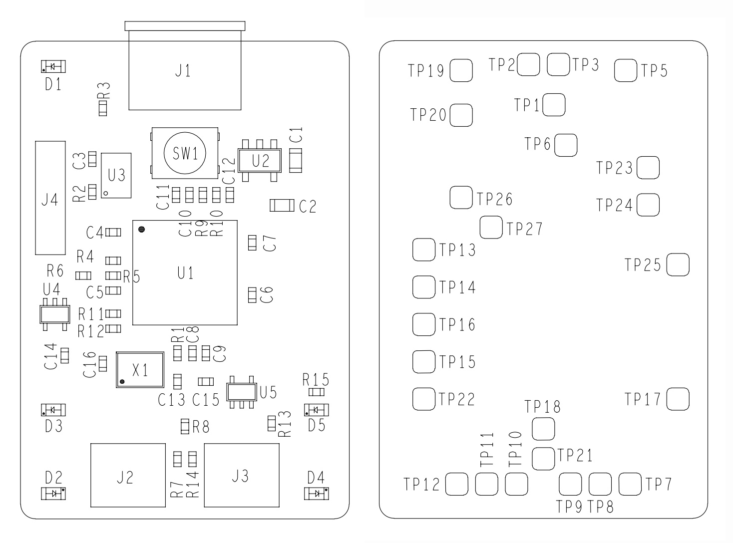 调试器有五个 LED 灯:一个是红色 LED 电源指示灯,另外四个是状态指示灯。